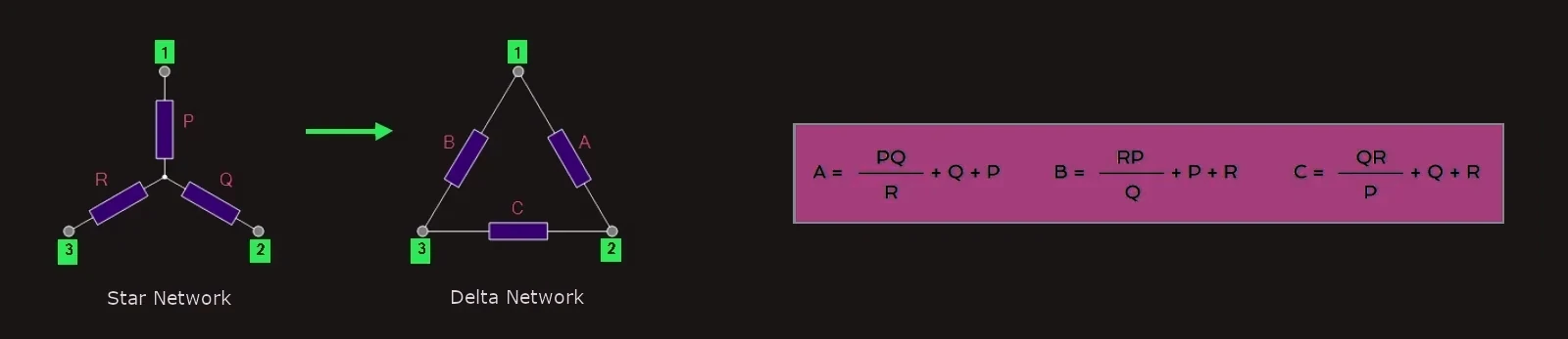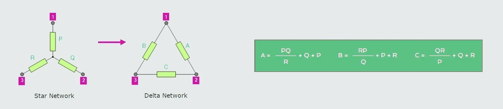 To convert a delta network to an equivalent star network we need to derive a transformation formula for equating the various resistors to each other between the various terminals.