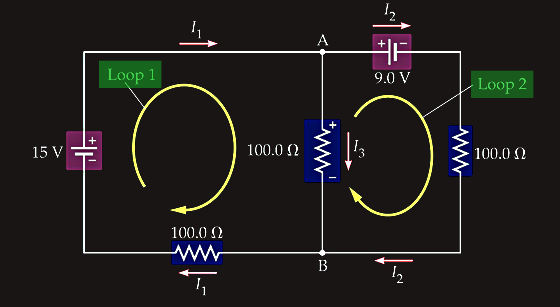 A Loop is any simple closed path within a circuit that starts and ends at the same node. In other words, a loop forms a complete closed circuit which passes through any node only once, starting and ending at the same point.
