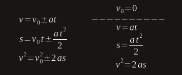 S obzirom da je v=at i s=(vt)/2, možemo dobiti još dva izraza koji povezuju veličine jednoliko ubrzanog pravolinijskog kretanja bez početne brzine: